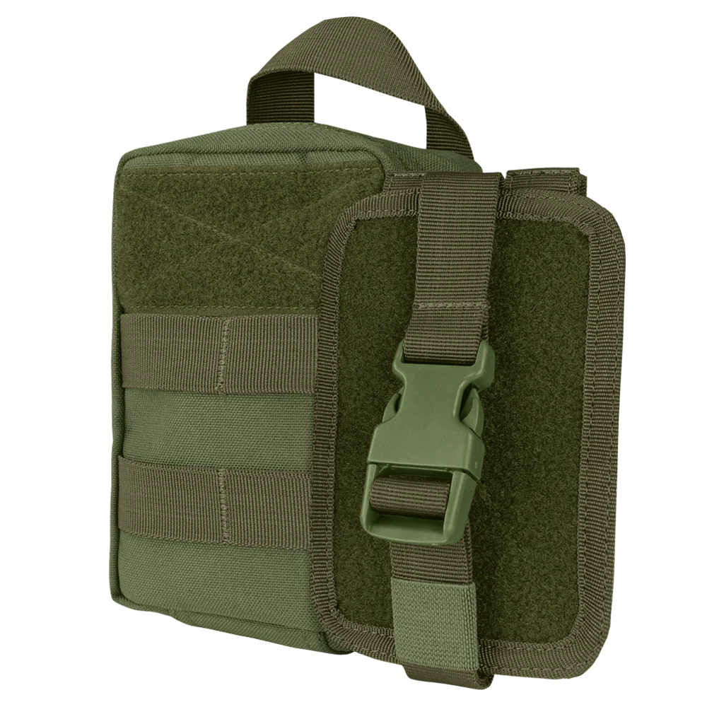Its clamshell design opens fully, revealing an organized interior featuring elastic loops to secure your essential medical items, making them quickly accessible in high-pressure situations. MOLLE compatibility allows for versatile attachment to belts, tactical vests, or backpacks, making it an indispensable tool for anyone needing reliable first aid readiness.
